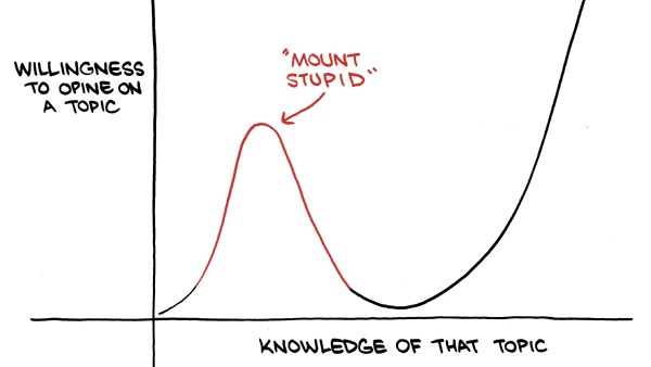 I have climbed Mt. Stupid enough times that, even at my advanced age, I am rarely willing to claim to be an expert even in areas I’m an expert in. I’ve been a speaker at a conference, giving technical talk to a small room full of PhDs and post-docs. I’m pretty educated - but I’m not that educated. The Q&A session wasn’t awful, but it wasn’t a good time, either.